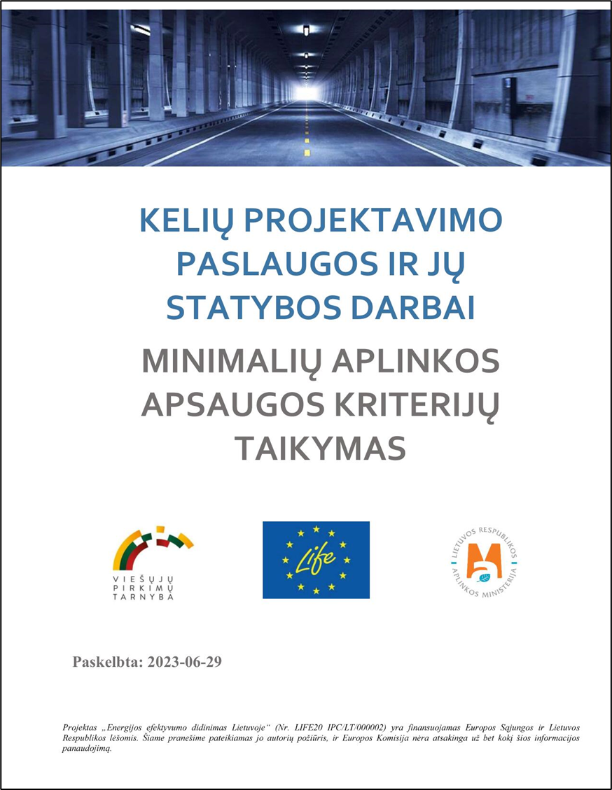 Nuo 2023 m. sausio 1 d. įsigaliojo nauja Lietuvos Respublikos aplinkos ministro 2011 m. birželio 28 d. įsakymu Nr. D1-508 „Dėl Aplinkos apsaugos kriterijų taikymo, vykdant žaliuosius pirkimus tvarkos aprašo patvirtinimo“ patvirtinta Aplinkos apsaugos kriterijų taikymo, vykdant žaliuosius pirkimus tvarkos aprašo (toliau – Tvarkos aprašas) redakcija. Tvarkos aprašo 2 priedo XVII skyriaus 26 punkte „Kelių projektavimo paslaugos ir jų statybos darbai“ yra patvirtinti minimalūs aplinkos apsaugos kriterijai.